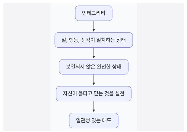 A["인테그리티"] --> B["말, 행동, 생각이 일치하는 상태"]